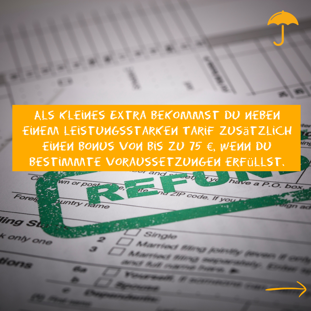 Zusätzlich kannst Du bei den guten Tarifen jedes Jahr einen s. g. Gesundheitsbonus von bis zu 75 € bekommen.