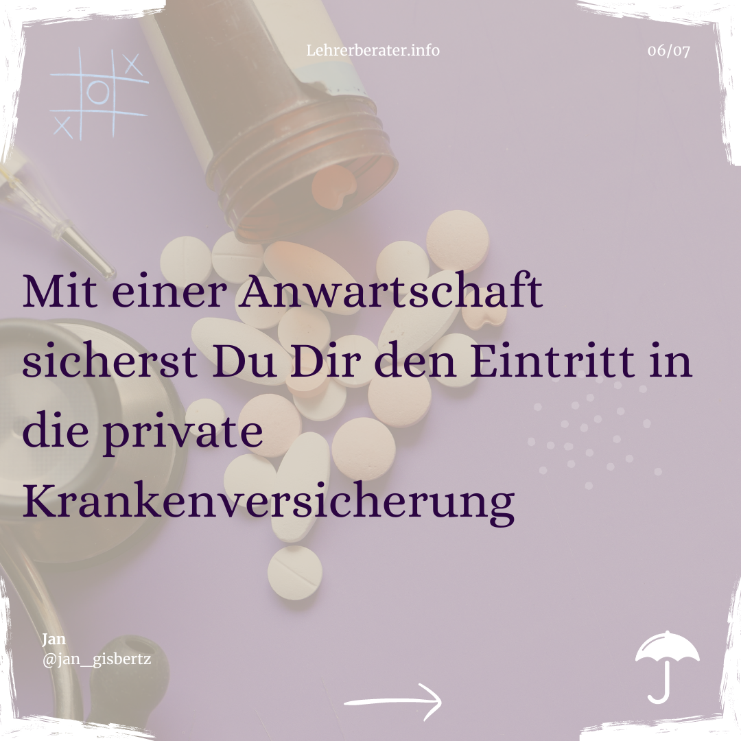 Damit Du später ohne Aufwand in die private Krankenversicherung wechseln kannst, auch wenn sich Deine Gesundheit verschlechtert hat, solltest Du Deinen jetzigen Gesundheitszustand über eine Anwartschaftsversicherung „einfrieren“.